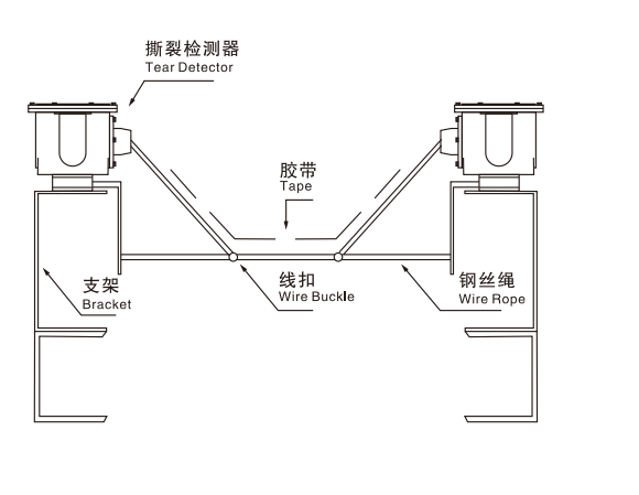 Install the switch on both sides of the tape in the right form, connect the two switch pull rings with the wire rope, and use the lifting ring to make the wire rope walk parallel to the tape.